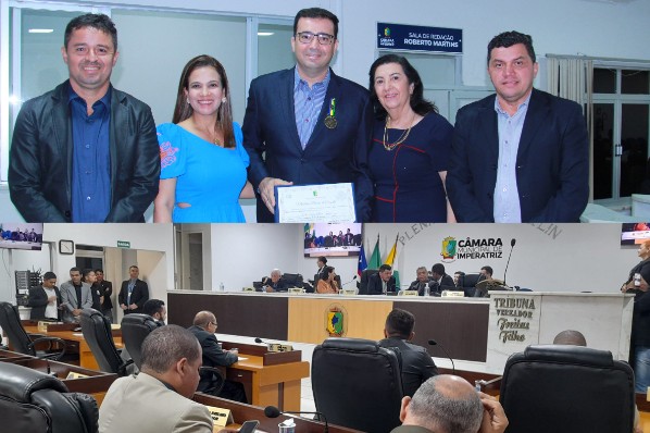 Após a entrega da honraria, o presidente-vereador Alberto Sousa (PDT) abre a sessão ordinária deliberativa, junto com a mesa diretora e aprovando com os colegas vereadores presentes a ‘Moção de Aplauso’ ao Sr. João Borges Lira - Presidente da Associação Comercial e Industrial de Imperatriz - ACII, pelo excelente trabalho desenvolvido durante a 20º FECOIMP. A maior feira multissetorial de negócios do Maranhão, que aconteceu nos dias 21 a 24 de setembro de 2022, com o tema: Histórias que Inspiram o Futuro. Essa edição bateu todos os recordes: maior quantidade de expositores, números mais elevados de visitantes e volume de negócios extraordinário. Evento valioso e grandioso para o desenvolvimento da nossa cidade, de autoria do vereador Berson do Posto Buriti (SDD).