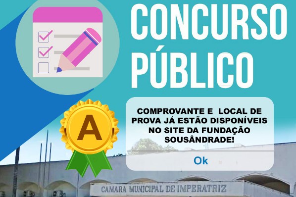 Cumprindo o disposto no Edital do Concurso Público, a Câmara Municipal de Imperatriz , com transparência e seriedade, torna público que a Fundação Sousândrade de Apoio ao Desenvolvimento da UFMA – FSADU, disponibilizou informações sobre o LOCAL DE APLICAÇÃO DA PROVA OBJETIVA, que será realizada no dia 18/09/2022, no turno matutino, das 8h às 12h, horário vigente no Maranhão.